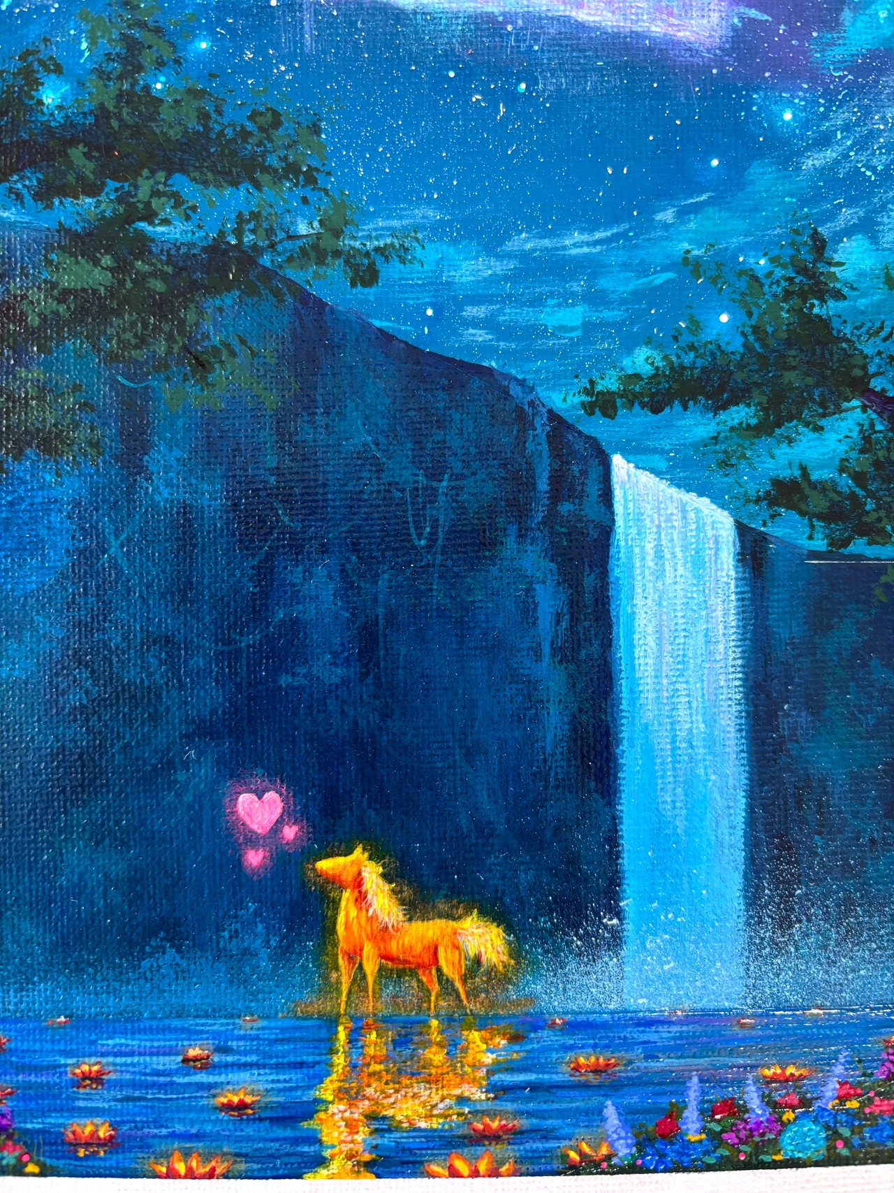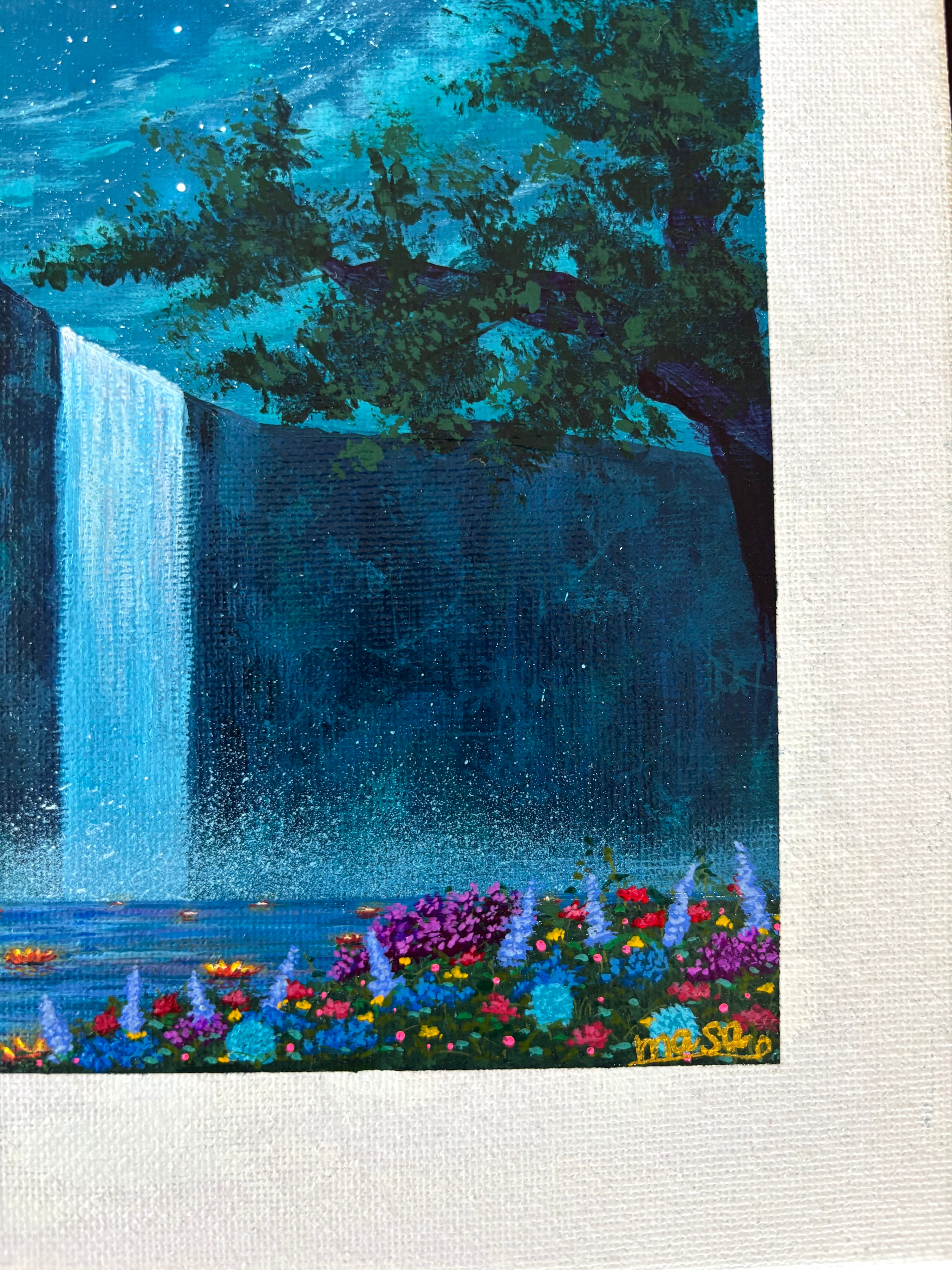 神秘的な色彩とテクスチャーを心がけて描いています。お部屋の鮮やかなアクセントに、また贈り物としてお使いください。